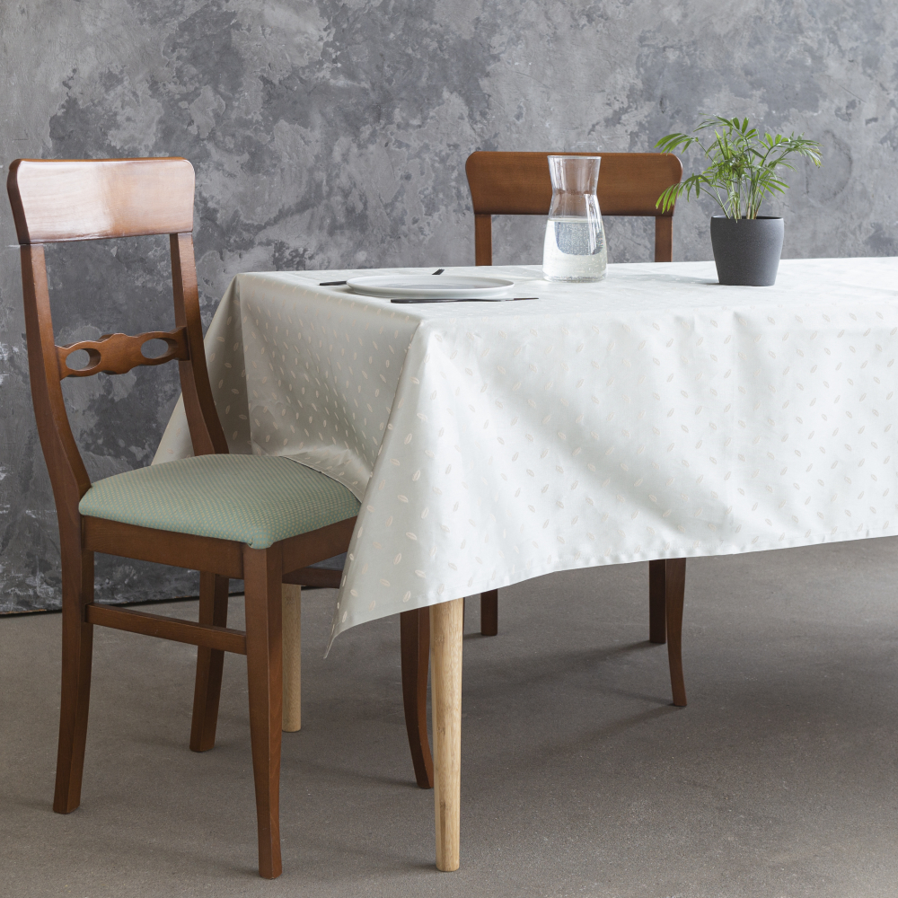 Obrus „Tea beans” idealnie sprawdzi się dla młodych rodzin, które chcą odświeżyć wnętrze domu. Łatwa w pielęgnacji tkanina nie sprawia problemów i może być prana zarówno w pralce, jak i ręcznie.